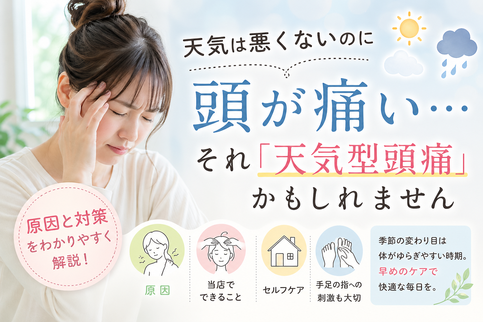 頭痛・だるさ・首こり・肩こりを感じやすい季節です。